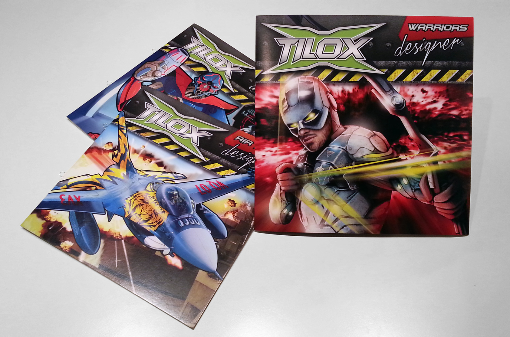 Znana nam i lubiana marka Lillalou wydała niedawno kreatywne szkicowniki, skierowane przede wszystkim do chłopców. Tilox znacznie się różnią od słodkich, dziewczęcych i cukierkowych Lillalou. Są bardziej męskie, tajemnicze i bardziej techniczne. Do wyboru mamy 3 zeszyty: Warriors, Robots i Air Force, a w przygotowaniu są kolejne części: Cars, Military, Space.