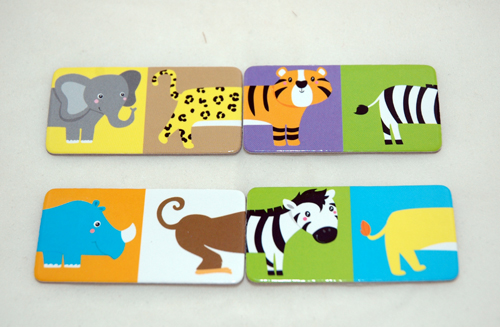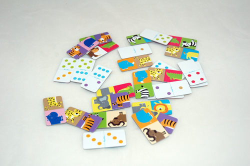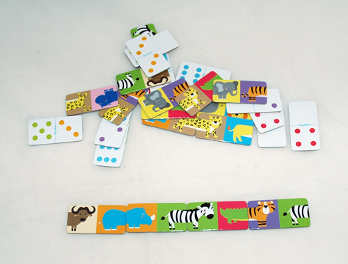 Zabawka przeznaczona jest dla dzieci w wieku powyżej 3 lat. Kartoniki domina mają wielkość ok. 3 x 6 cm, więc nie są ani za małe ani za duże – takie w sam raz, zarówno dla młodszych jak i dla starszych dzieci. Wykonane są z grubego, powlekanego kartonu, jednostronnie lakierowanego, więc ich trwałość będzie na pewno długa, będą odporne na zabrudzenia i zaginanie.